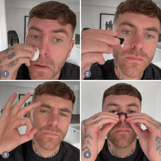 Rengör näsan från oljor och smuts, placera sedan klistermagneterna på vardera sida. Fäst därefter BreathClip försiktigt på näsan. Den kan användas både dag- och nattetid beroende på behov. Efter användning rengörs produkten enkelt med vatten och mild tvål innan den förvaras i asken.